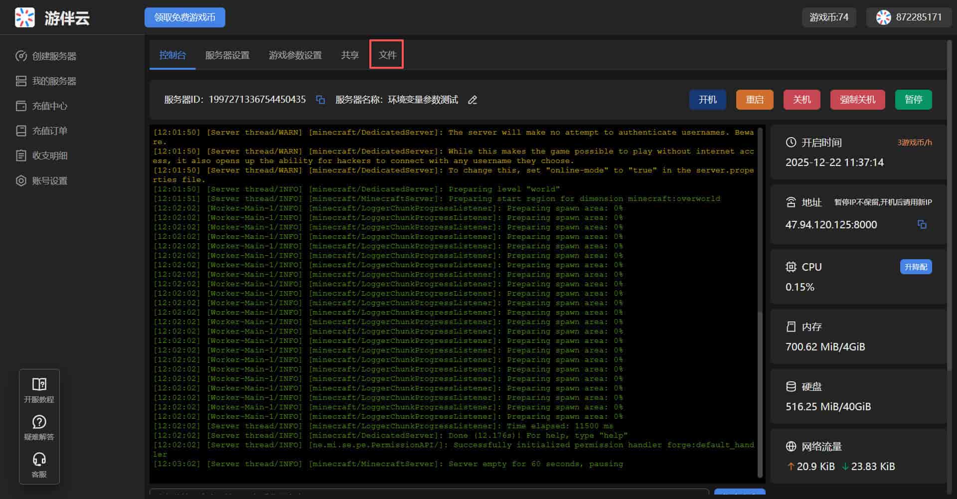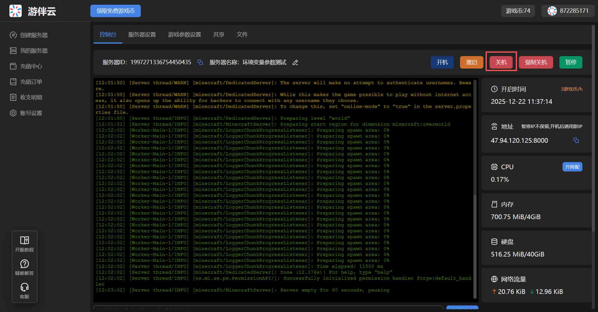 按钮,等待服务器开机完成即可