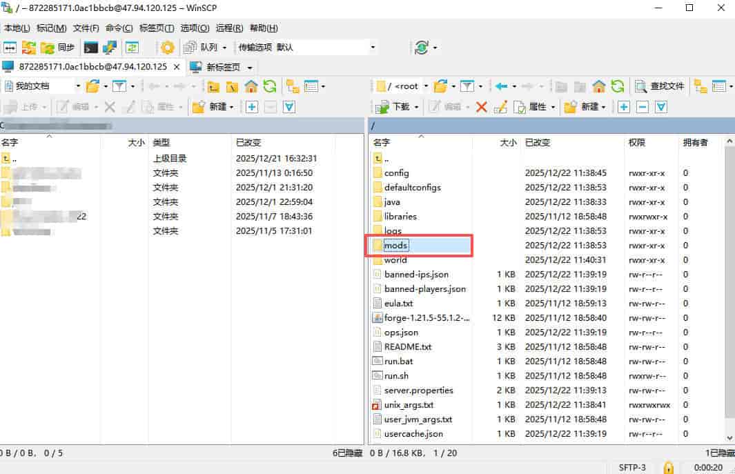 - 将 mod 文件上传至服务器的 mods 目录