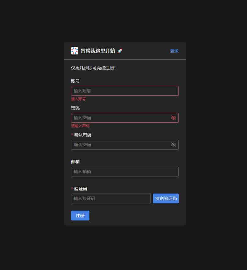 输入账号、密码、邮箱进行注册